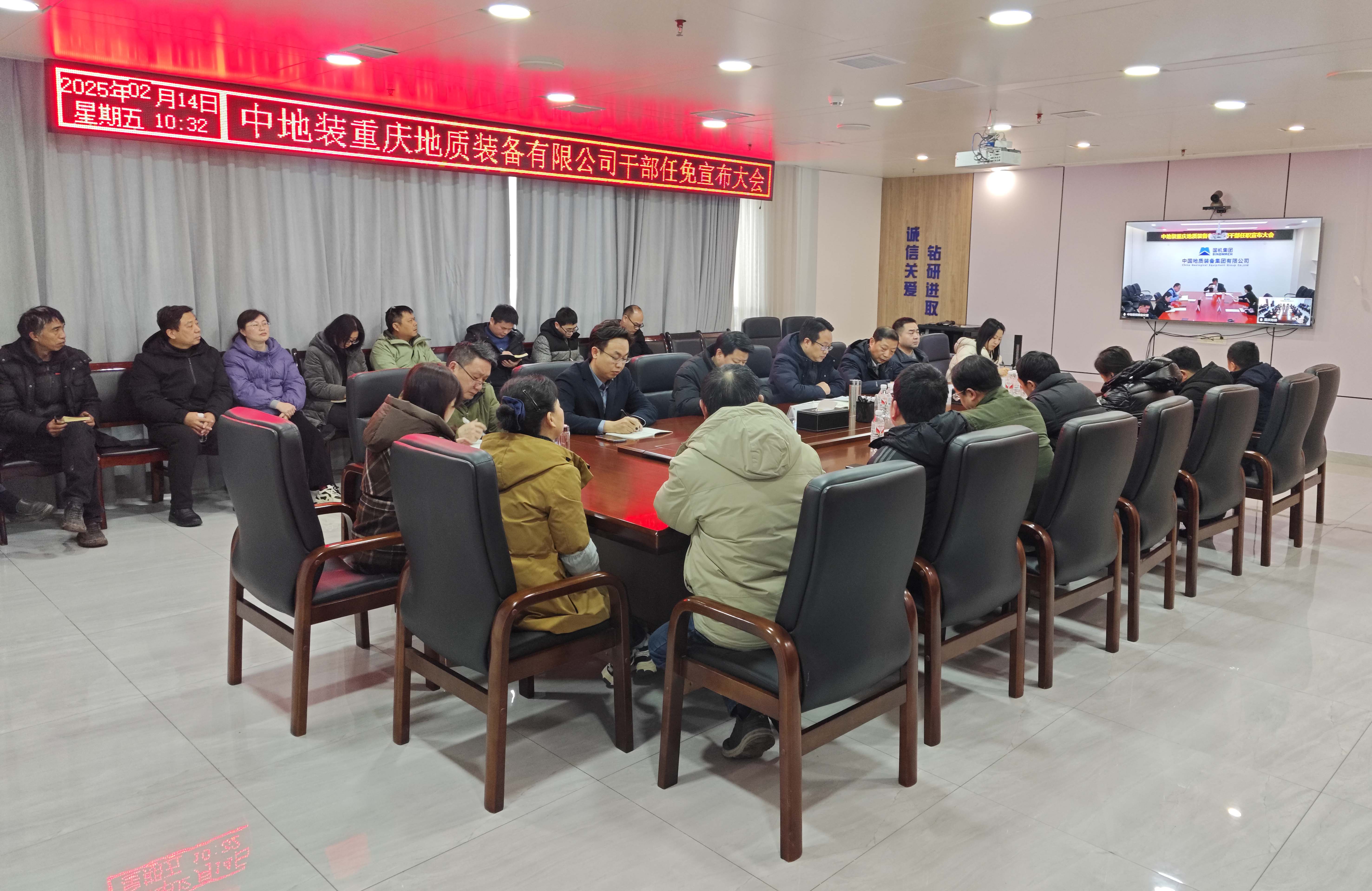 2025年2月14日,中地裝集團(tuán)召開在渝企業(yè)整合及干部任職宣布大會(huì)。本次會(huì)議召開標(biāo)志著原重探公司、重儀公司、重慶地裝三家在渝企業(yè)正式全面整合。整合后新公司名稱為:中地裝重慶地質(zhì)裝備有限公司(簡(jiǎn)稱:重慶地裝)。